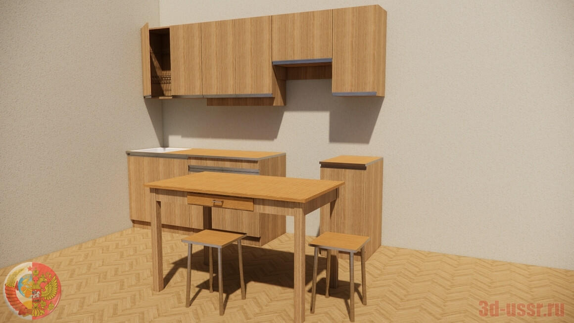 3d-модель советского кухонного гарнитура Берёзка. Подойдет для создания советских интерьеров, визуализаций, симуляторов, игр.