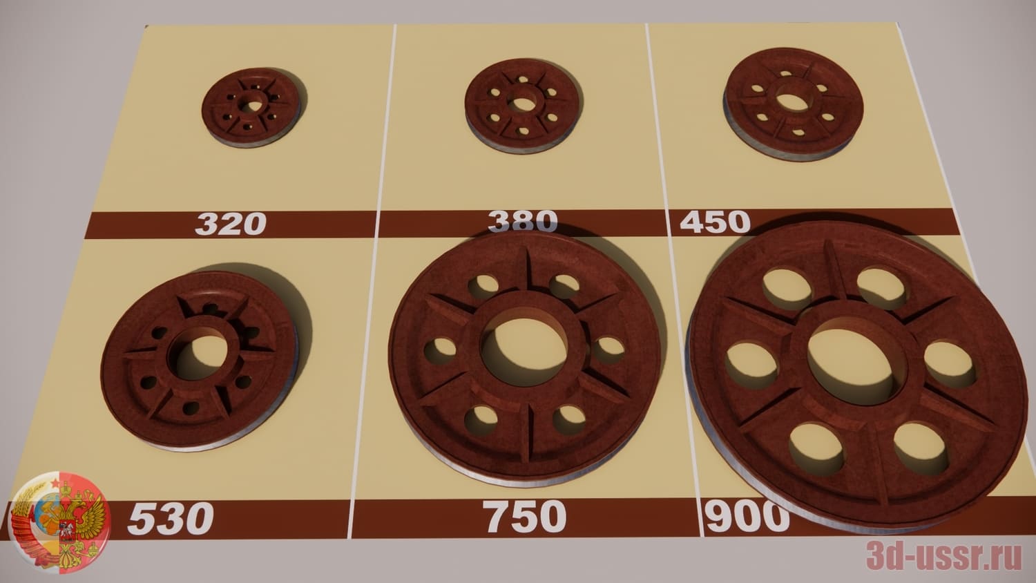 3d-модель канатных колёс (блоков для стальных канатов) выполненных по ОСТ 24.191.05. разработаны ВНИИПТМАШем. Диаметр от 320 до 900 мм. Изготавливались из серого чугуна, широко используются для кранового оборудования.