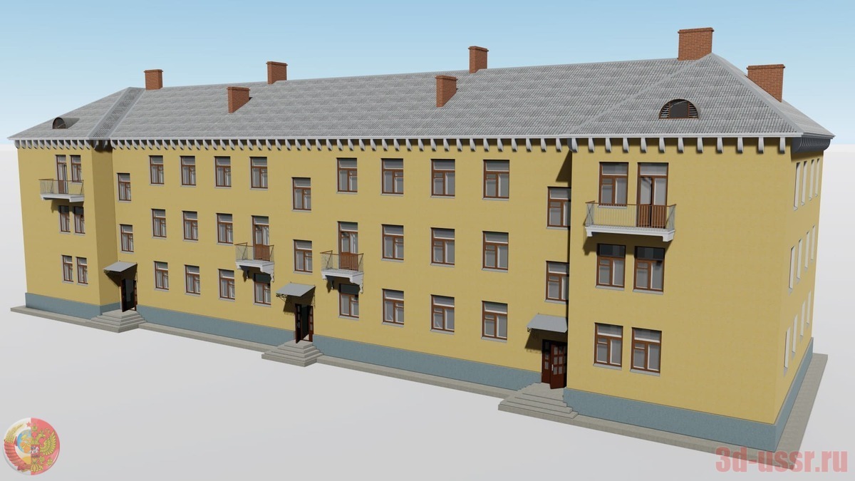 Данная 3d-модель сталинского трехэтажного дома серии 1-253-1 подойдет для создания игр, виртуальной реальности, дизайна, BIM-проектов, наглядного пособия для учебных целей. Большой находкой станет для любителей советской эпохи и тех, кто разрабатывает какой-либо проект на тему советской эпохи.