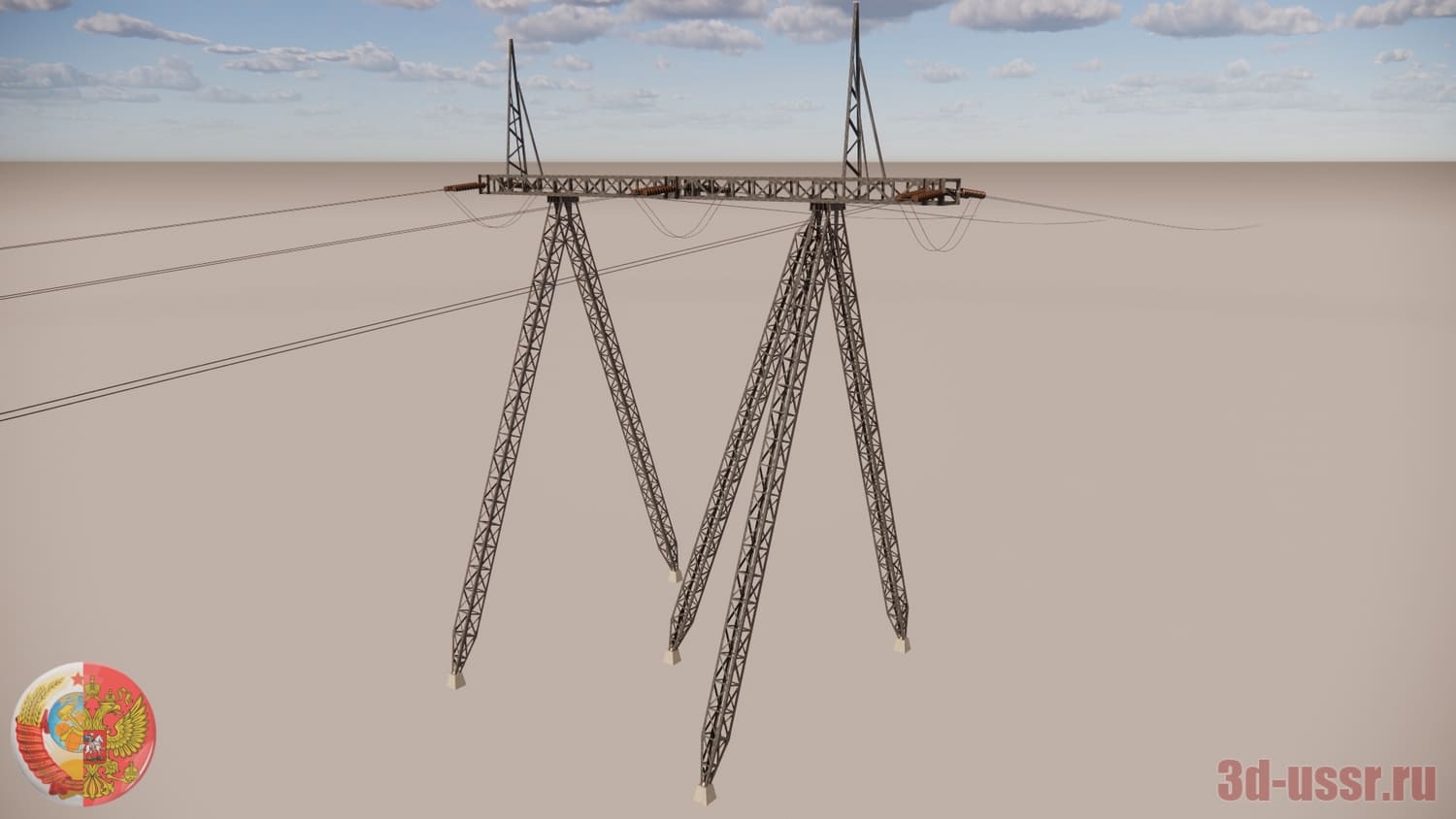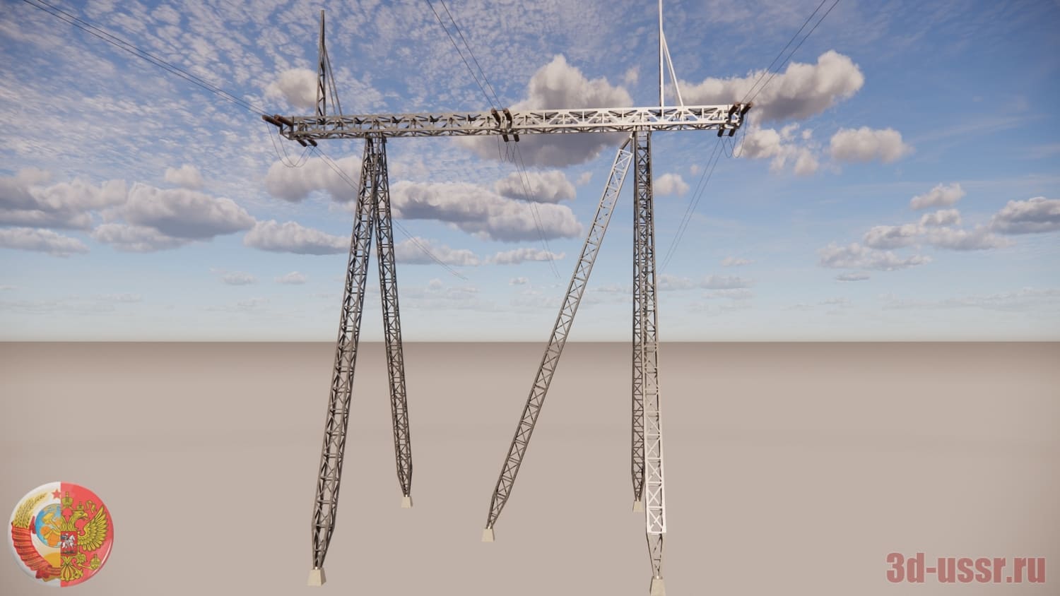 3d-модель металлической опоры высоковольтных линий 500 кВ (марка не определена), созданная по фотографиям. Подойдет для промышленного 3d-моделирования ЛЭП, ландшафтного дизайна, учебно-наглядных пособий, симуляторов.